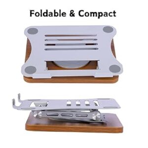 LAPTOP STAND METAL J19S (ADJUSTABLE, 360 ROTATING & WOODEN BASE)
