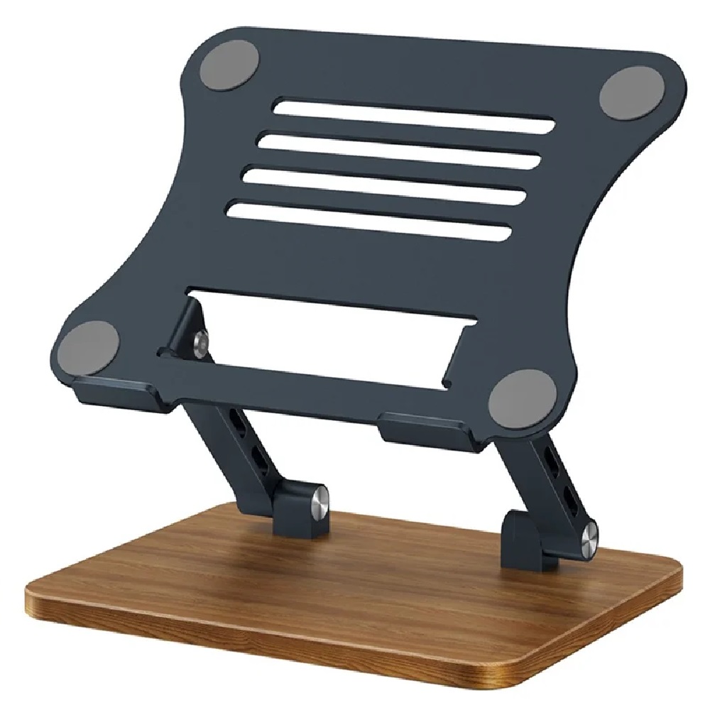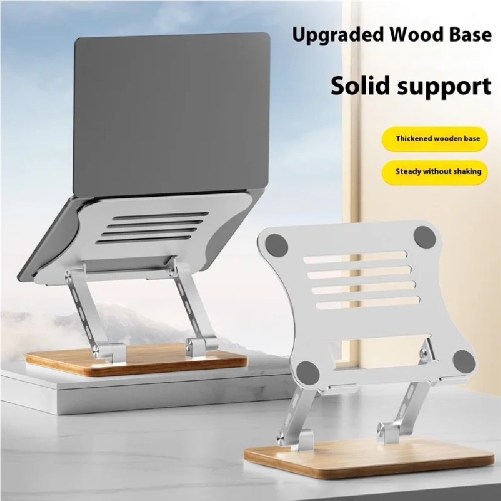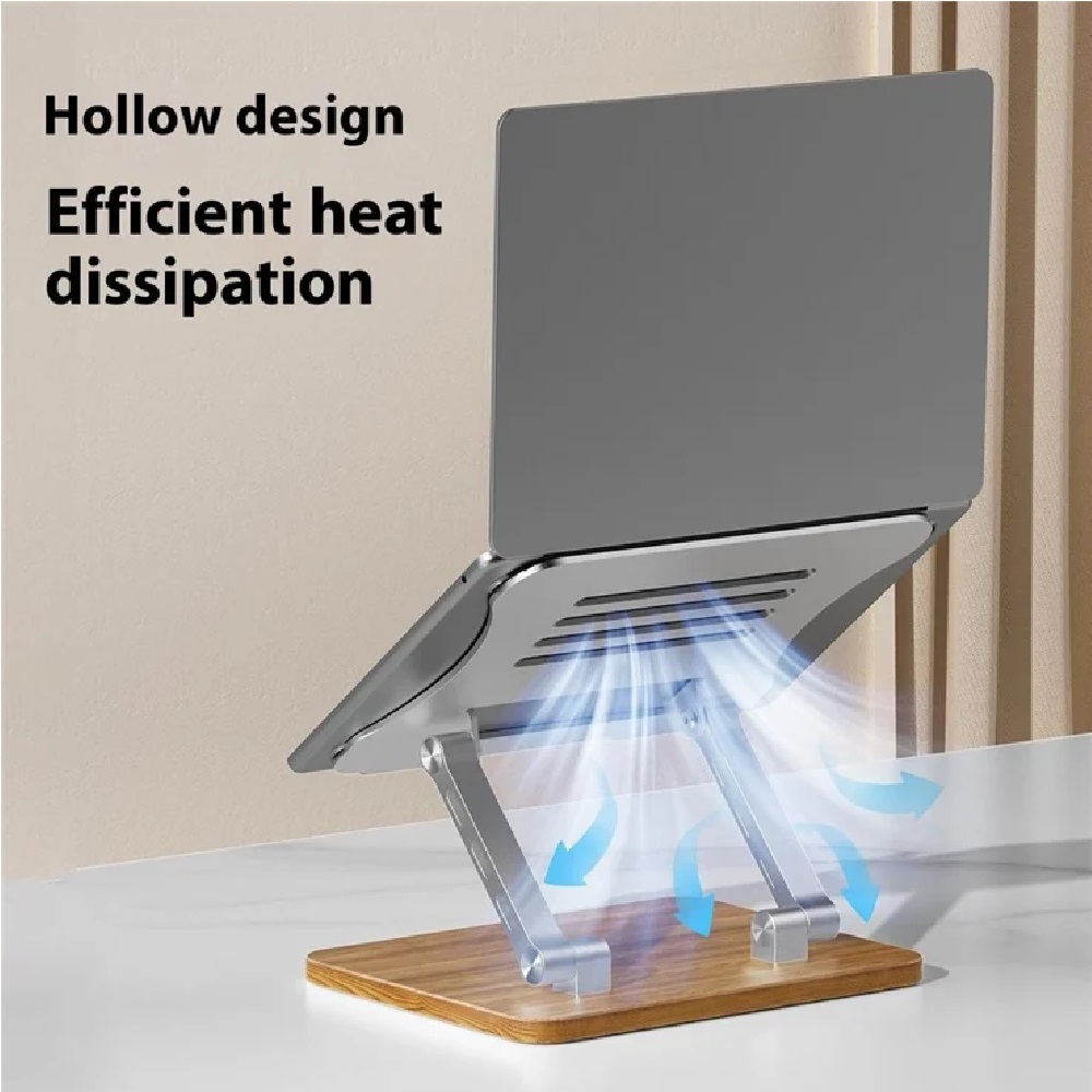 J32 Adjustable Laptop Stand Foldable Wood Base Metal Cooling Riser Desktop Bracket – Grey